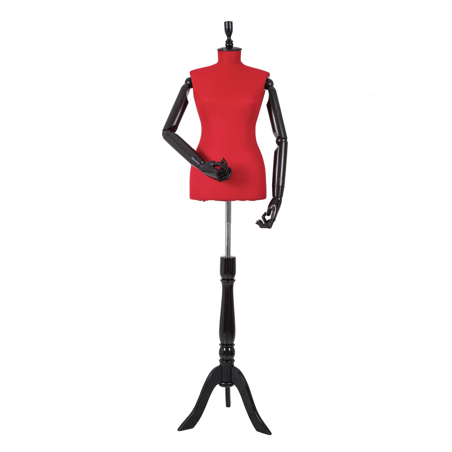 Bustul cu picior conferă un aspect elegant și clasic pentru a prezenta cu stil cele mai noi articole de îmbrăcăminte și accesorii. Bustul este realizat din material plastic turnat, acoperit cu material textil durabil, de culoare roșie.